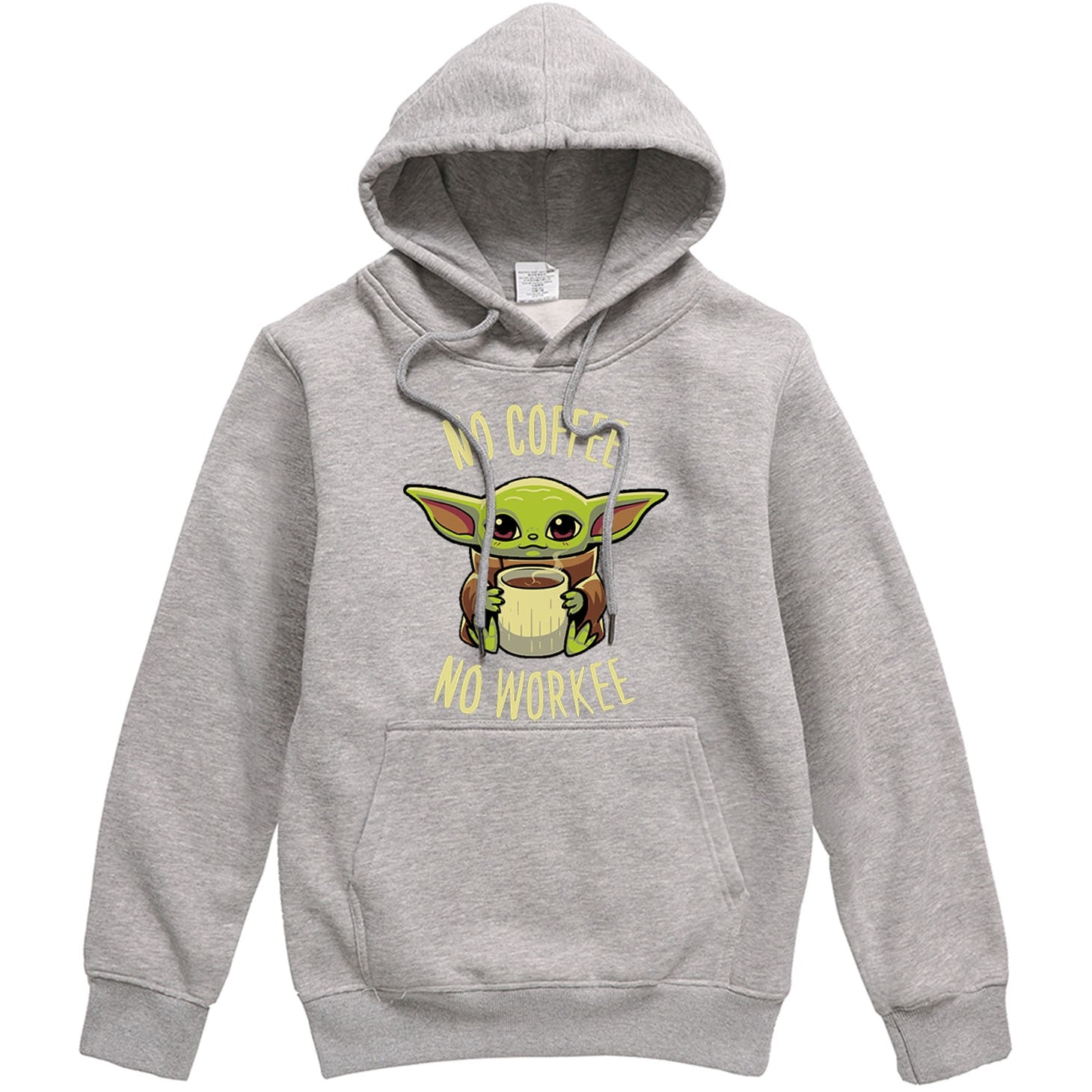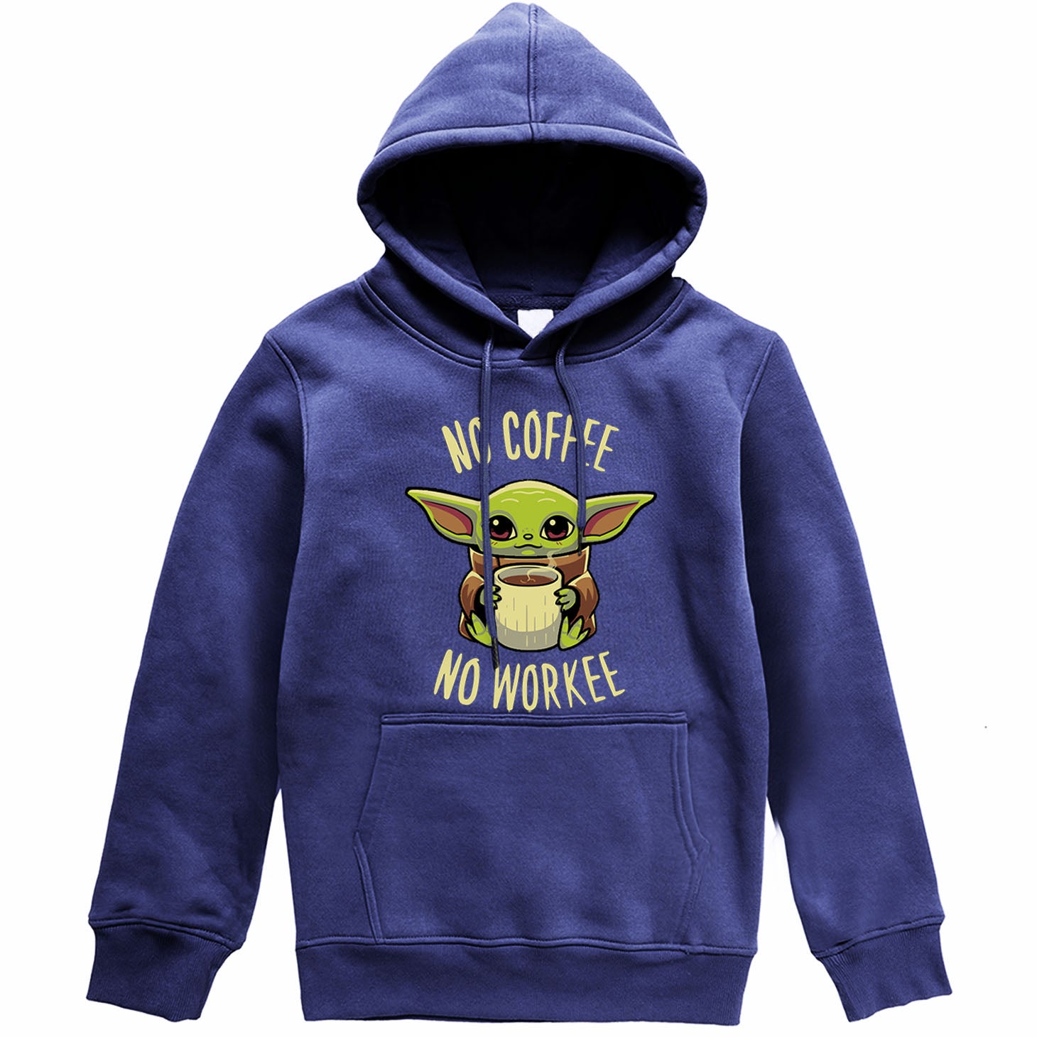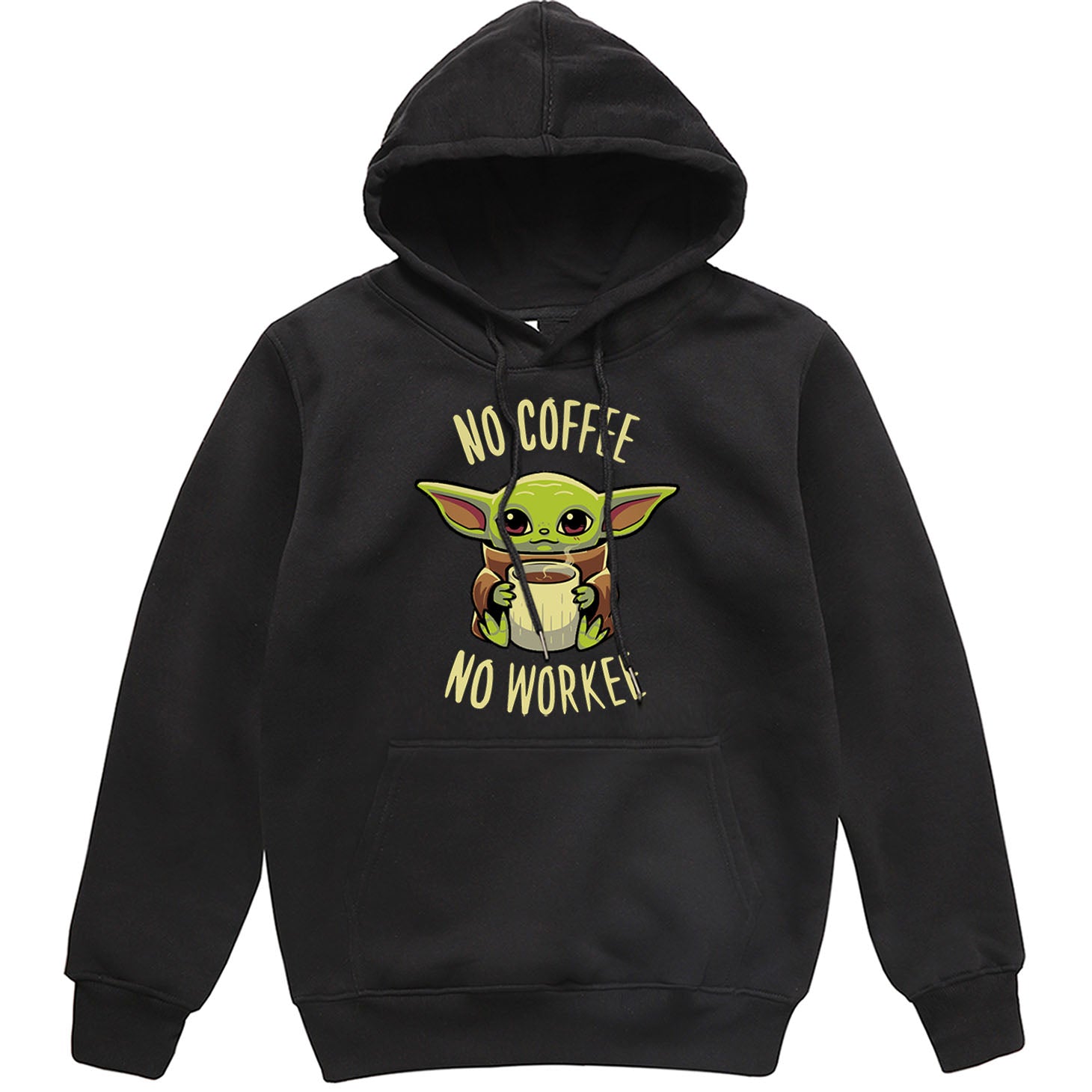 Funny Print NO COFFEE NO WORKEE Clothing Men Spring Autumn Warm Sweatshirts Stars Wars Mandalorian Baby Yoda Hoodies Streetwear
