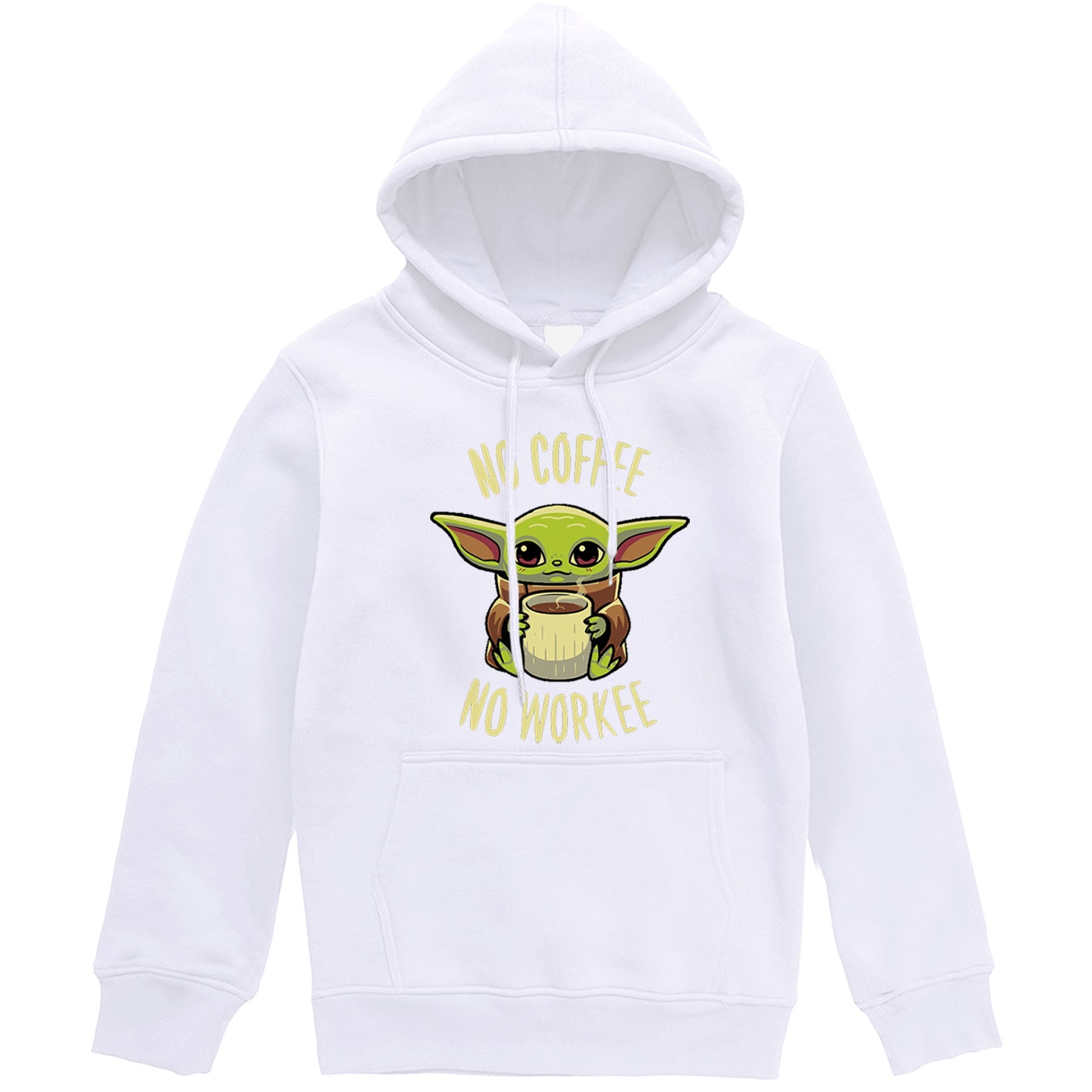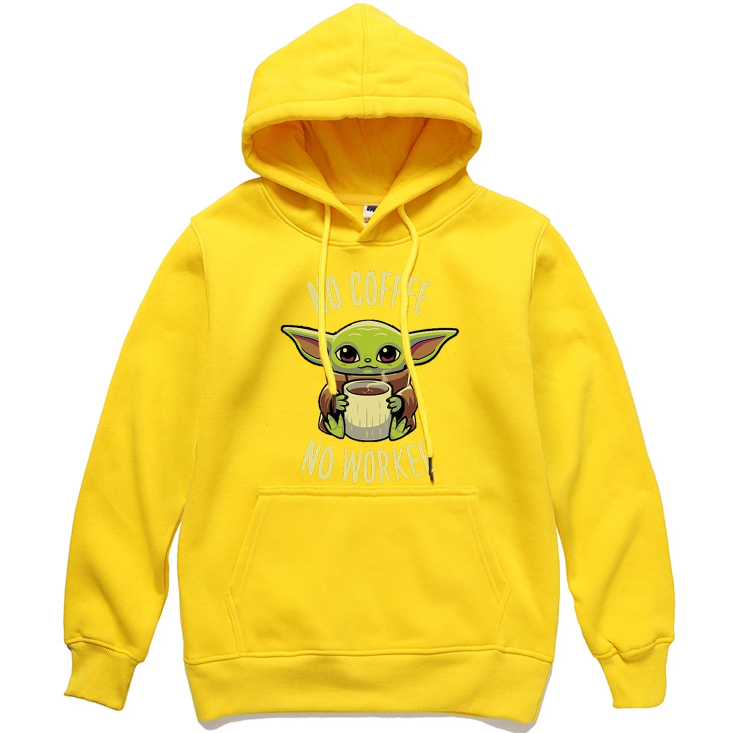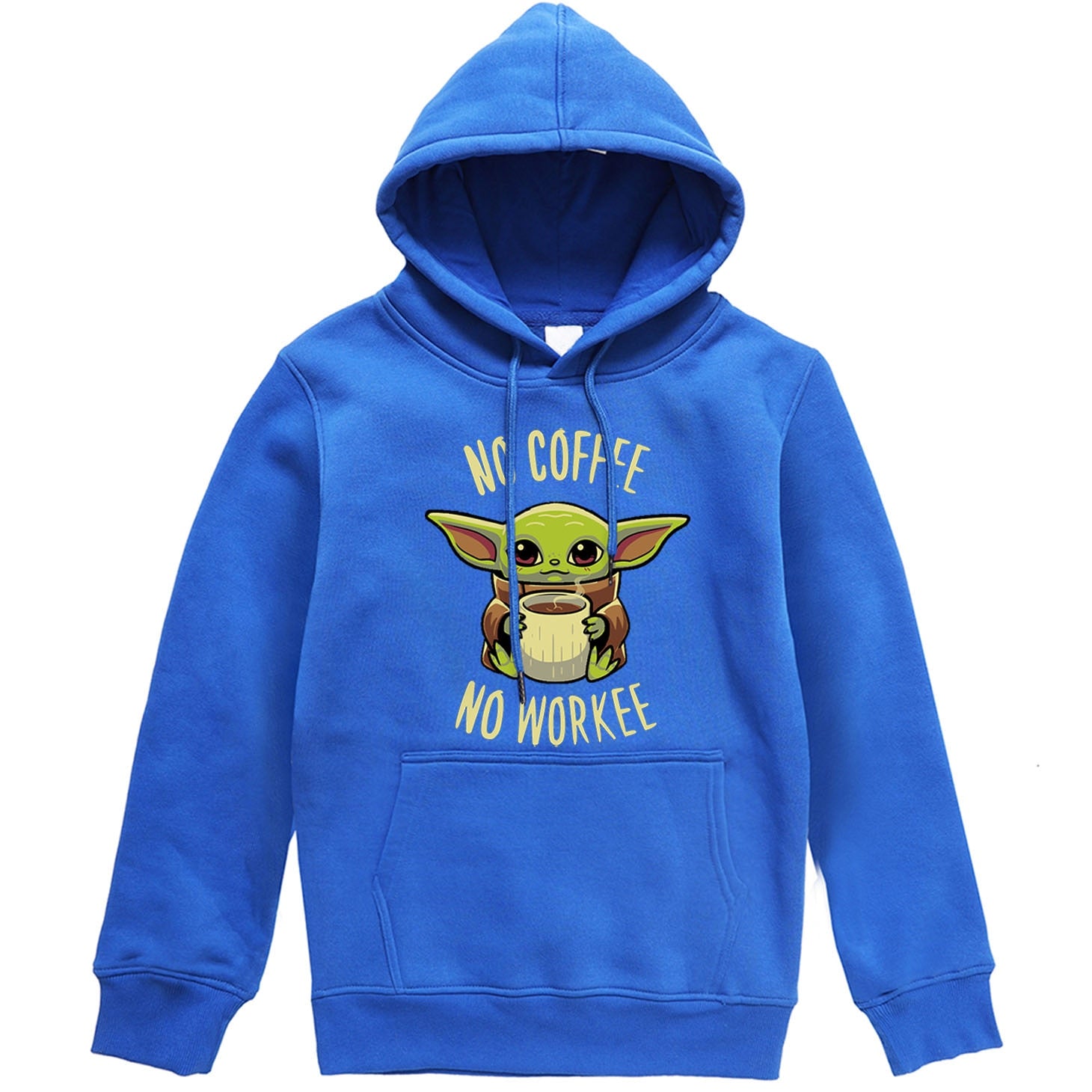Funny Print NO COFFEE NO WORKEE Clothing Men Spring Autumn Warm Sweatshirts Stars Wars Mandalorian Baby Yoda Hoodies Streetwear