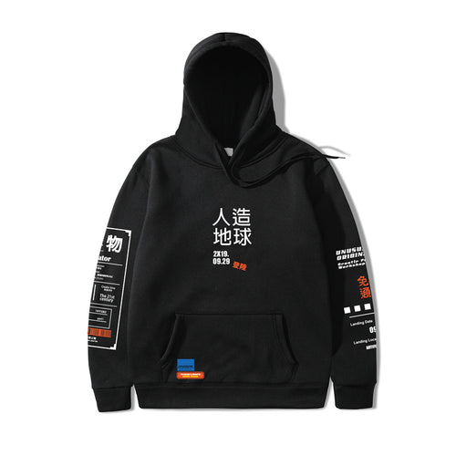 2019 Japan Harajuku Hoodie Sweatshirt Graphic Graffiti Kanji Hip Hop Streetwear Hoodie Cotton Autumn Winter Fleece Pullover 3XL