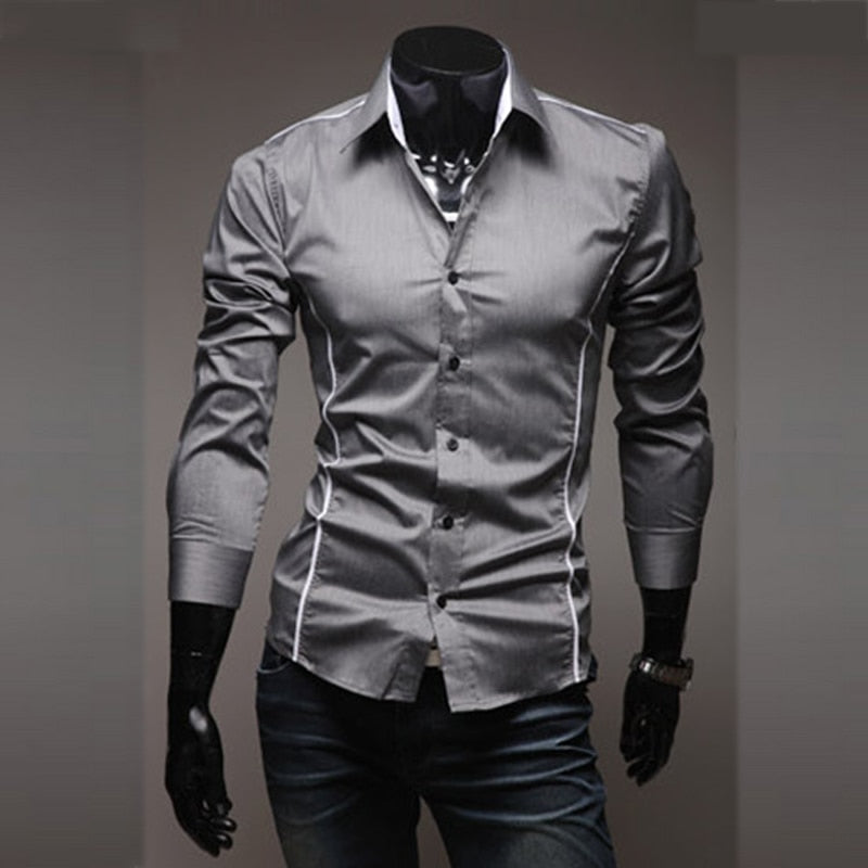 • Load image into Gallery viewer, 2018 New Mens Casual Shirts Slim Fit Long Sleeve Gray Male Striped Shirts Camisa Social Clothes Chemise Homme Plus Size M-3XL 50